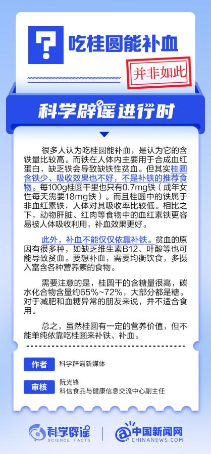 很多人认为吃桂圆能补血,是认为它的含铁量比较高。铁在人体内主要用于合成血红蛋白,缺乏铁会导致缺铁性贫血。但其实桂圆含铁少、吸收效果也不好,不是补铁的推荐食物。而且桂圆中的铁属于非血红素铁,人体对其吸收率比较低。相比之下,动物肝脏、红肉等食物中的血红素铁更容易被人体吸收利用,补血效果更好。