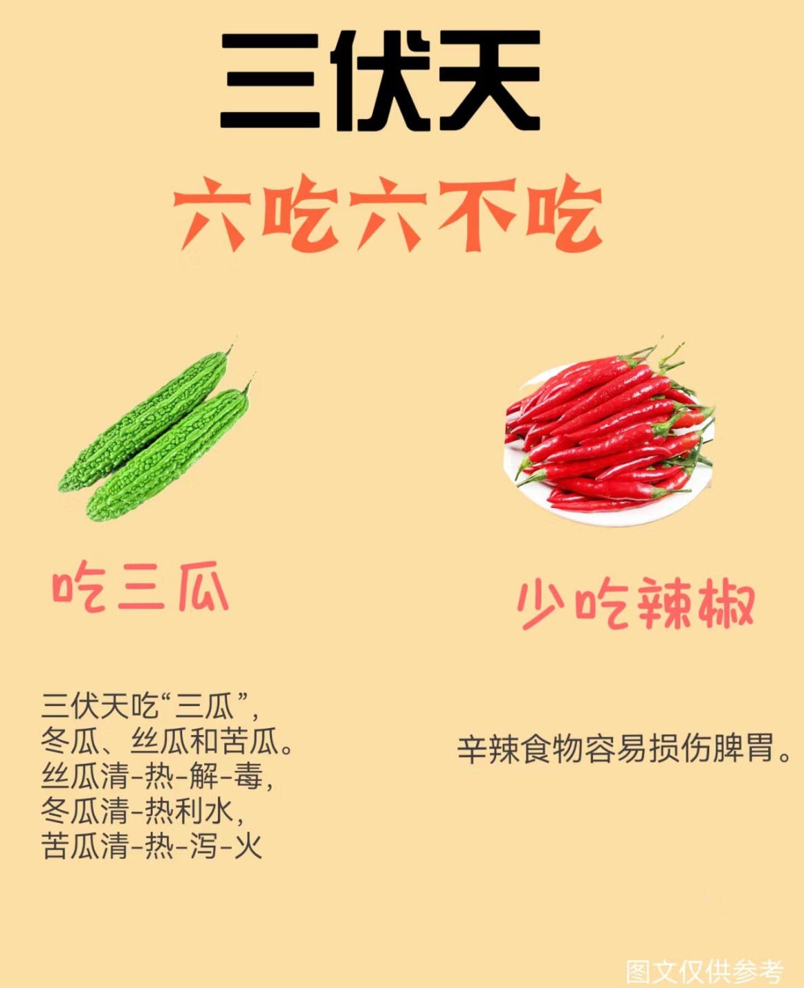 吃三瓜:丝瓜、冬瓜、苦瓜